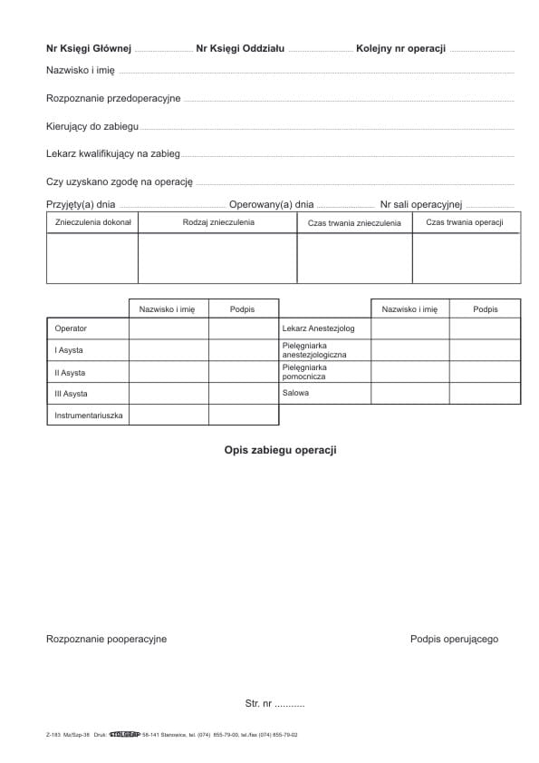 Księga dokonanych operacji A4 Mz/Szp-38 100 kartek