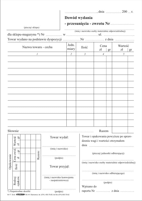Dowód wydania - przesunięcia zwrotu A5