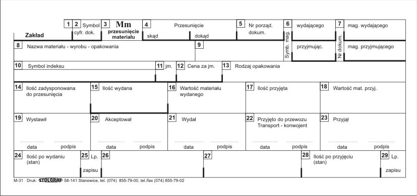 MM Przesunięcie materiału jednopozycyjne 100 kartek STOLGRAF