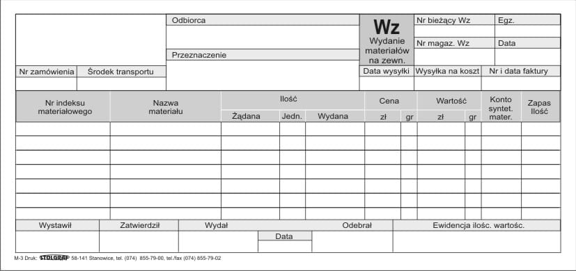 WZ mały 1/3 A4 wydanie materiałów ma zewnątrz 100 kartek STOLGRAF