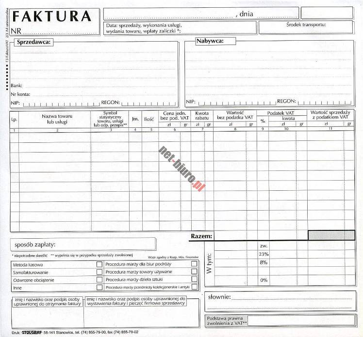 Faktura VAT 2/3 A4 uniwersalna 100 kartek STOLGRAF