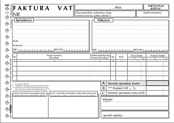 Faktura VAT A5 brutto - podatek liczony od brutto