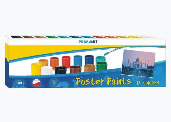 Farby plakatowe z kolekcji Prima Art. Farby w 12 intensywnych kolorach, rozwijające kreatywność małych twórców.