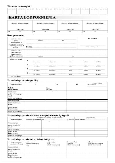 Karta uodpornienia A4