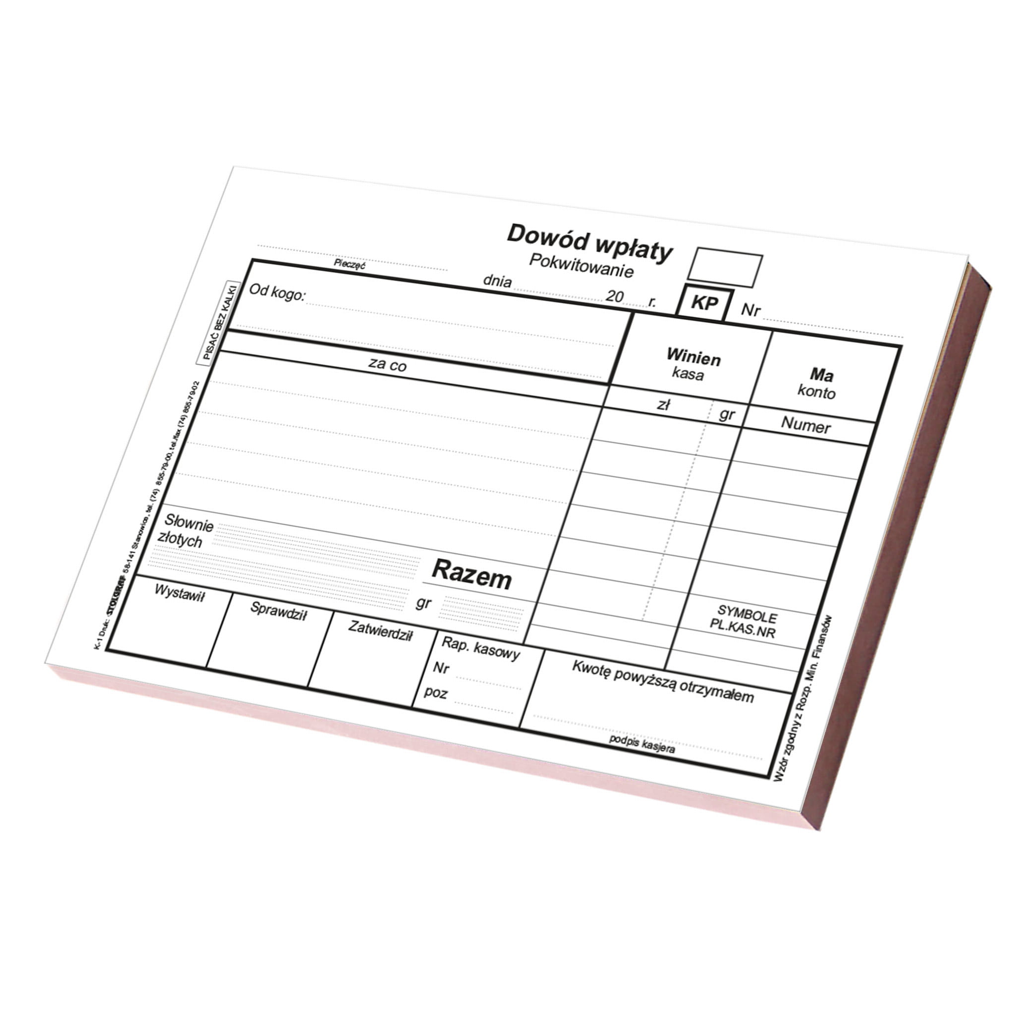 KP - Dowód wpłaty 100 kartek wielokopia STOLGRAF