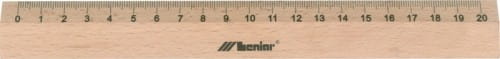 wykonana z polerowanego drewna bukowego, z podziałką w mm, pakowana pojedynczo w blister.