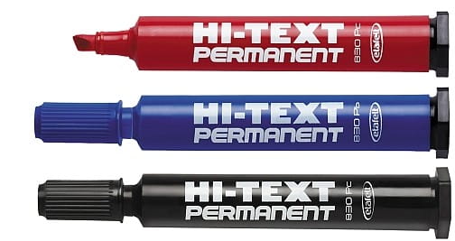 Pisaki niezmywalne włoskiej serii Hi-Text do wszystkich powierzchni, odporne na światło i wodę, tusz mocno kryjący o zwiekszonej zawartości aż do 4g zapewnia długie użytkowanie, końcówka ścięta 5 mm.