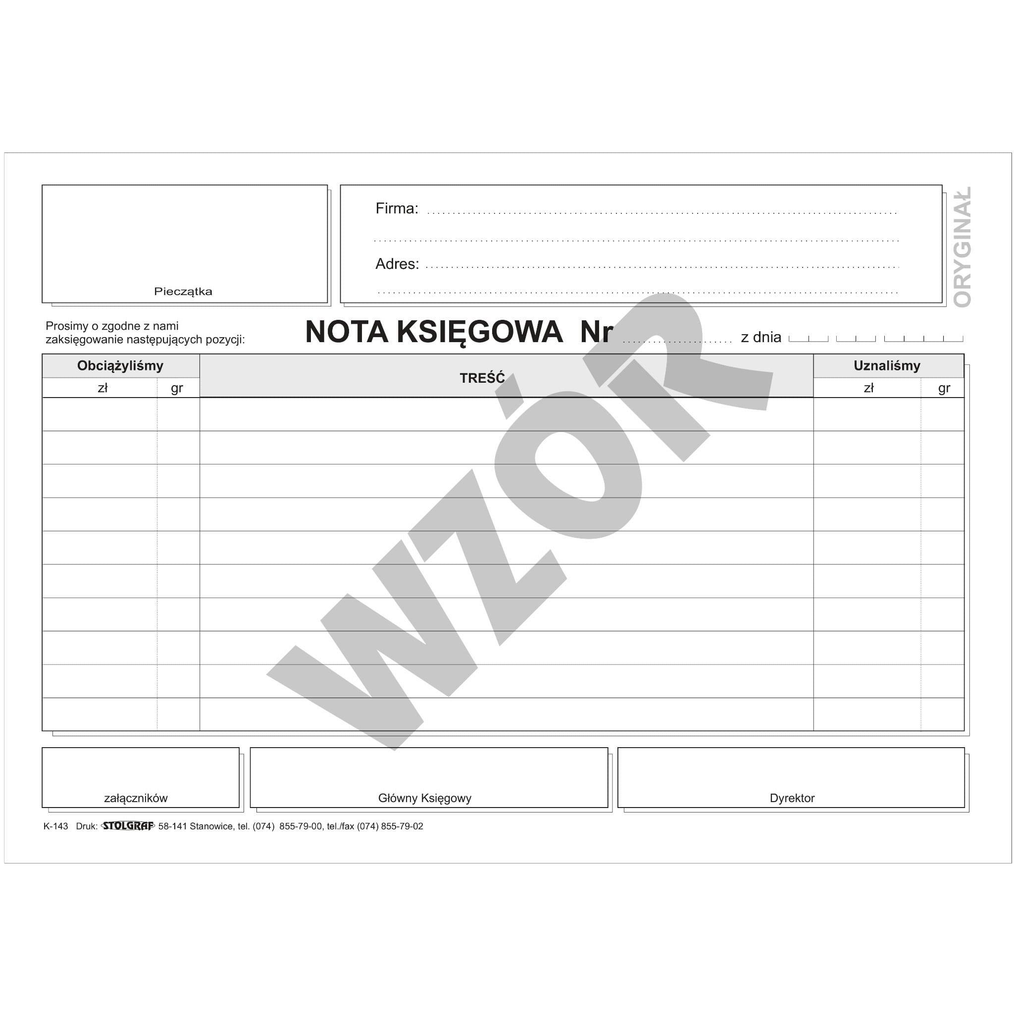 - Papier: samokopiujący jednostronny, oryginał + kopia
