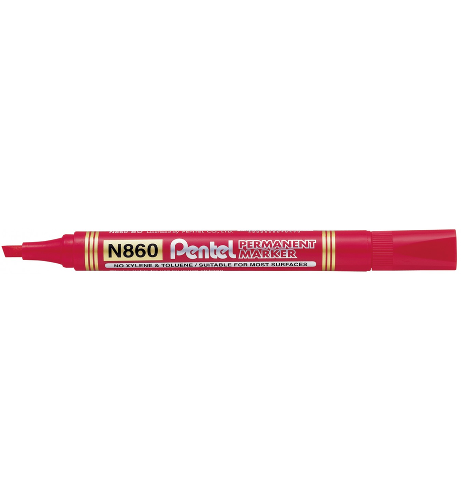 Marker permanentny PENTEL N860 czerwony ścięta końcówka 1,2-4,5 mm