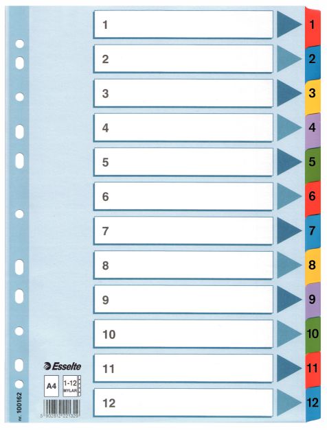 Przekładki Esselte Mylar 1-12 z kolorowymi indeksami 100162