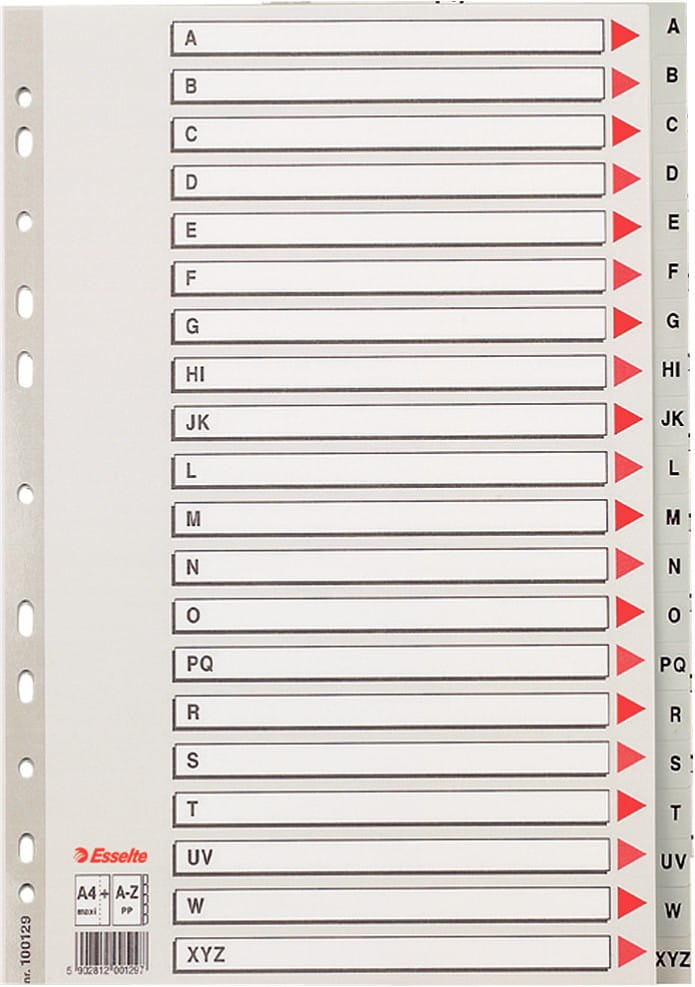 Przekładki Esselte plastikowe popielate A-Z MAXI 100129