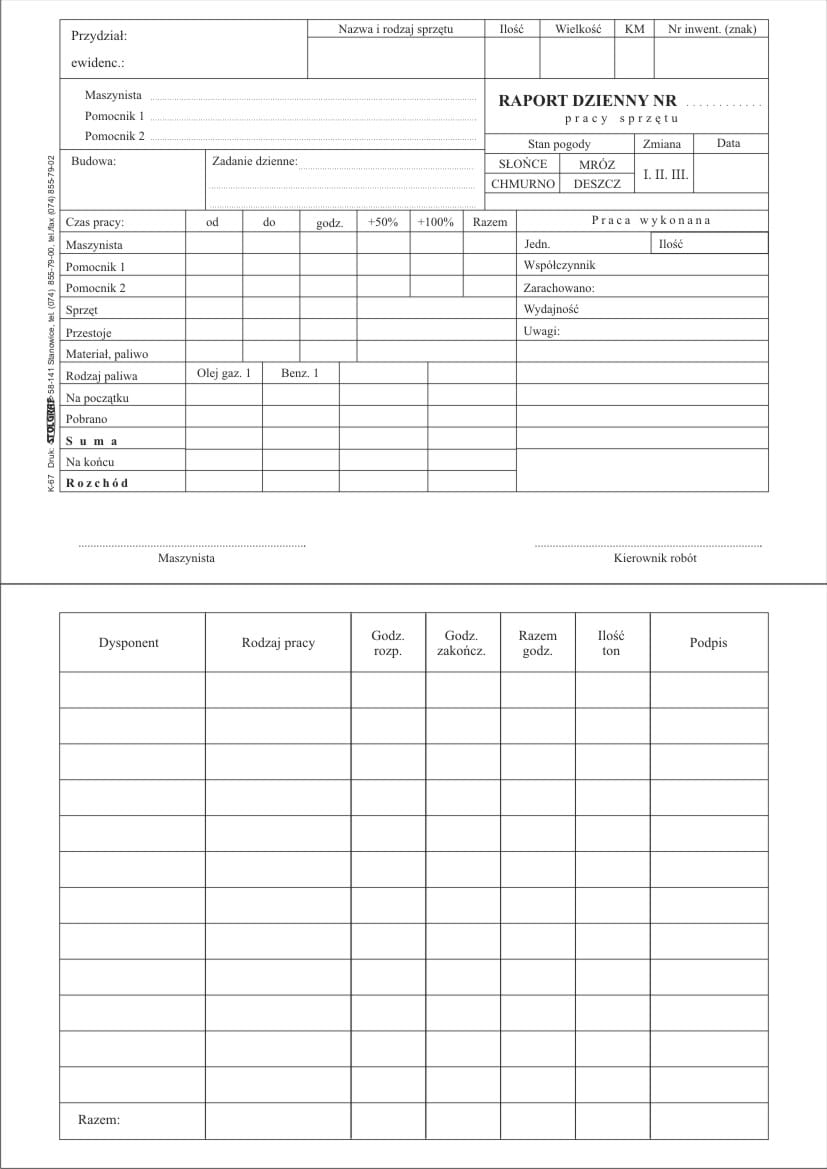 Raport dzienny pracy sprzętu A5 100 kartek STOLGRAF