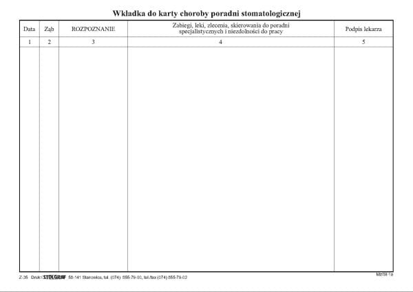 Wkładka do karty choroby poradni stomatologicznej A5 Mz/St-1a